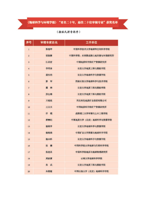 、东北农业大学、成都理工大学等高校,中国科学院地质与地球物理研究所、中国科学院水利部成都山地灾害研究所、中国地质科学院矿产资源研究所、中国自然资源航空物探遥感中心等科研院所为本次专辑提供了重要学术支持。主编彭建兵院士,执行主编范文教授,副主编兰恒星、李振洪教授等编委以及关心学报发展的专家学者为本次专辑的成功出版提供了大量学术资源。