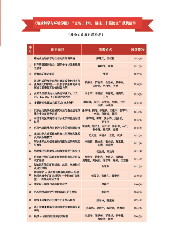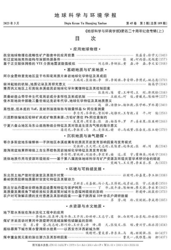 建校七十周年专辑”(上)(中)(下),2022年成功出版“庆祝西安地质调查中心组建六十周年专辑”(上)(下)、“纪念刘国昌先生诞辰110周年专辑”之后,在精神传承型专刊方面的又一力作。随后,编辑部还将在2023年第5期推出“庆贺汤中立院士从事地质工作七十周年专辑”,非常期待各位专家学者赐稿!