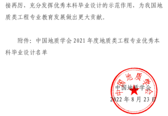 为创新工程教育理念,激发地质类工程专业指导教师和学生在毕业设计工作过程中的积极性,切实提高地质类工程教育的教学质量和毕业设计质量,推动我国工程教育专业认证工作高质量发展,中国地质学会面向全国地质类工程专业开展优秀本科毕业设计评选工作。本次中国地质学会共收到全国地质类各专业推荐的优秀本科毕业设计候选材料共计85份。根据《中国地质学会地质类工程专业优秀本科毕业设计评选办法(试行)》,经形式审查、初评、终评等环节,共评选出16份优秀本科毕业设计。