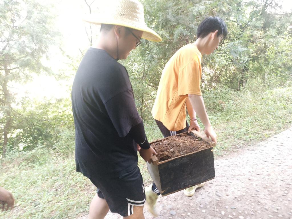 图 9 学生野外取土与运土