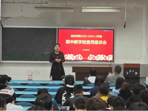 地质工程系的座谈会由系主任成李萍主持。会上,她调研了本学期的教学效果、学生目前关切的问题等,对实习安排、学生日常生活等问题给予了耐心解答。随后,教师代表成玉祥鼓励同学们要努力学习、奋发图强,不断实现自己的人生、学业理想。老师们对学生们择业就业、升学出国等问题也给予了一定的经验分享。