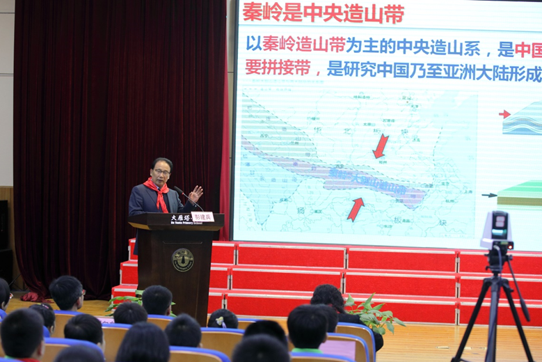 、中国地质调查局西安矿产资源调查中心、西安市雁塔区大雁塔小学于2024年11月15日在西安市雁塔区大雁塔小学联合举办秦岭生态地质科普——“院士专家进课堂”活动。