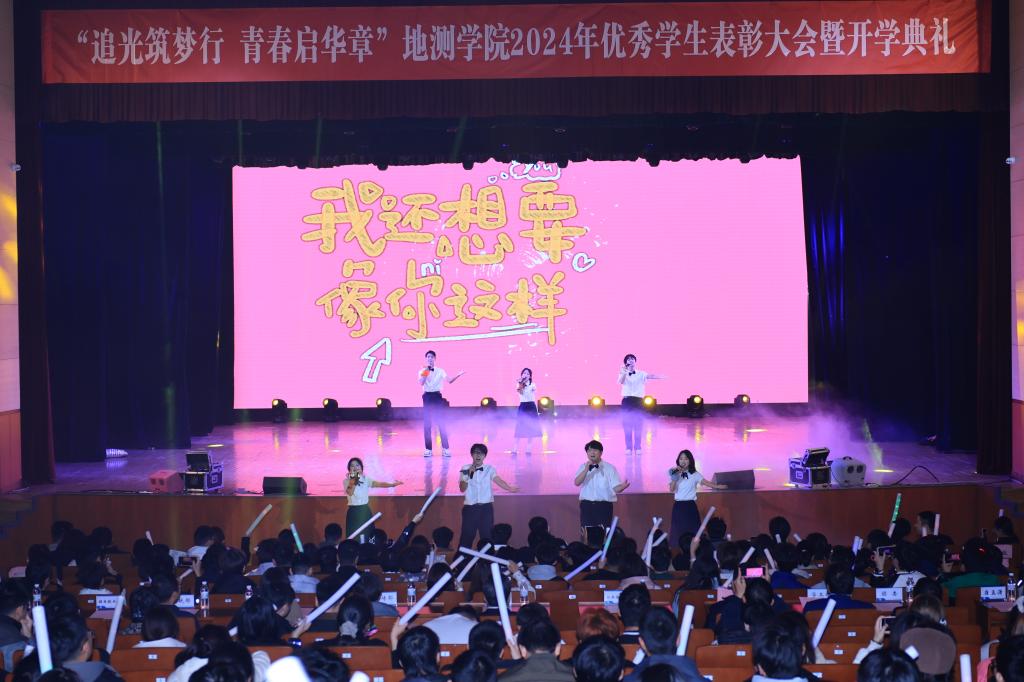 新生代表冀啸涵在发言中倡议:广大地测学子要以青春之“长”风,逐时代之“大”潮;博学笃志,扎实学识,练就本领;学榜样精神,承优良学风,铸非凡自我。