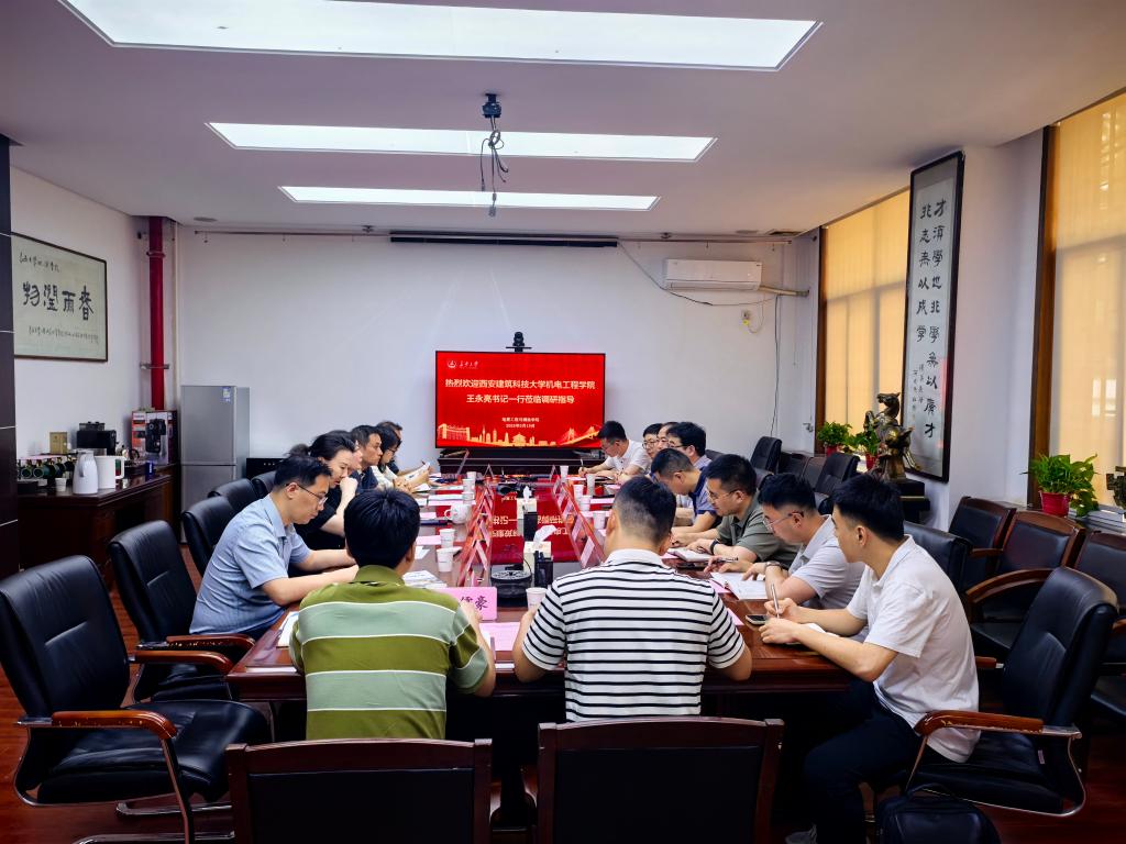 5月19日,西安建筑科技大学机电工程学院党委书记王永亮,党委副书记、纪委书记、副院长王凯一行8人来jojo漫画 调研交流。jojo漫画 党委书记王树莹,副书记、副院长、纪委书记欧阳韬,党支部书记代表、学生辅导员等相关工作人员参会。本次座谈会由学院党委副书记潘迎主持。