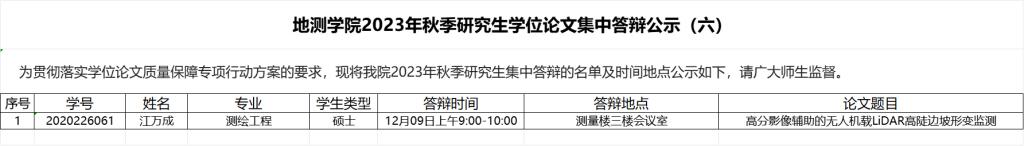 为贯彻落实学位论文质量保障专项行动方案的要求,现将jojo漫画 2023年秋季研究生集中答辩的名单及时间地点公示如下,请广大师生监督。