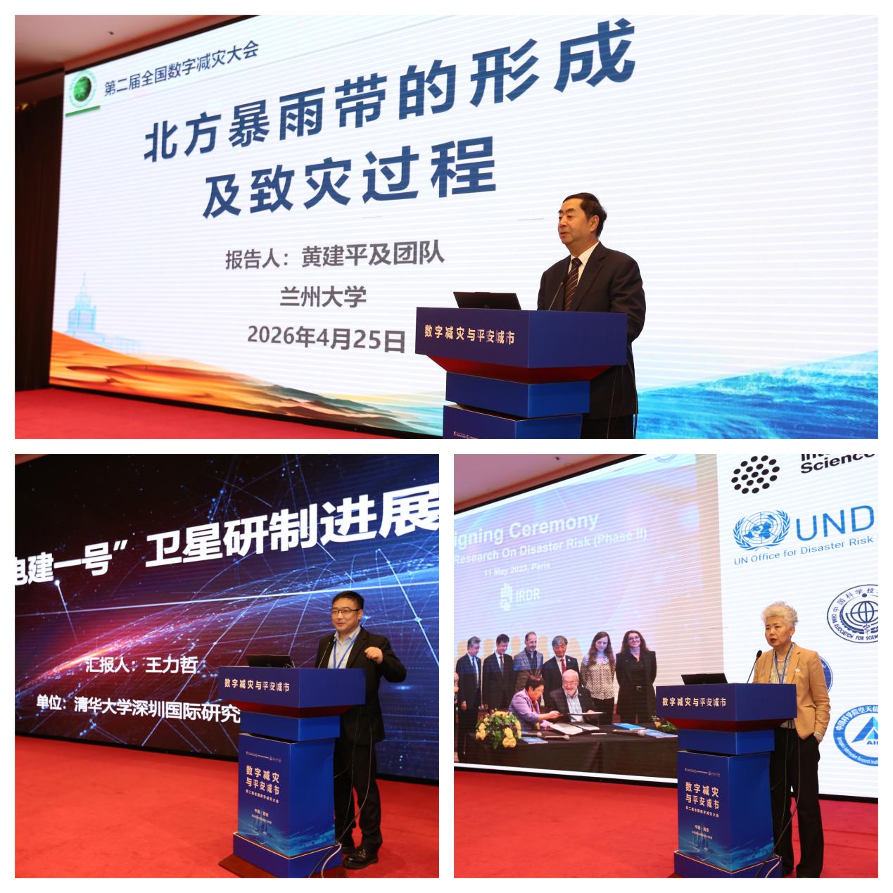 开幕式后,大会特邀黄建平院士、杨赛霓、王力哲、单新建、陈方、李三忠、佟彬、杨慧等专家围绕北方暴雨带的形成及致灾过程、数智创新支持仙台框架实施、“电建一号”遥感卫星研制进展、现代大地测量技术与地震地质灾害监测应用、亚洲高山区自然灾害空间观测与认知、海洋灾害系统、中小型地质灾害智能防控与AI赋能防灾减灾、空天地协同的煤田火灾智能监测与预警等主题作主旨报告,集中展示了数字减灾领域前沿理论、关键技术与应用实践。
